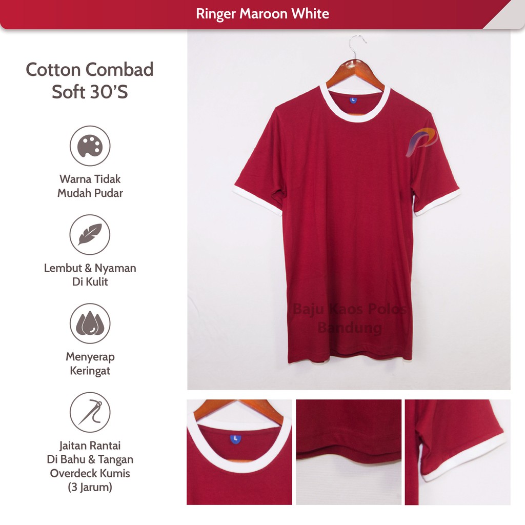 Kaos Polos Ringer Maroon White Lengan Pendek Cotton Combed 30s Kekinian Murah Unisex